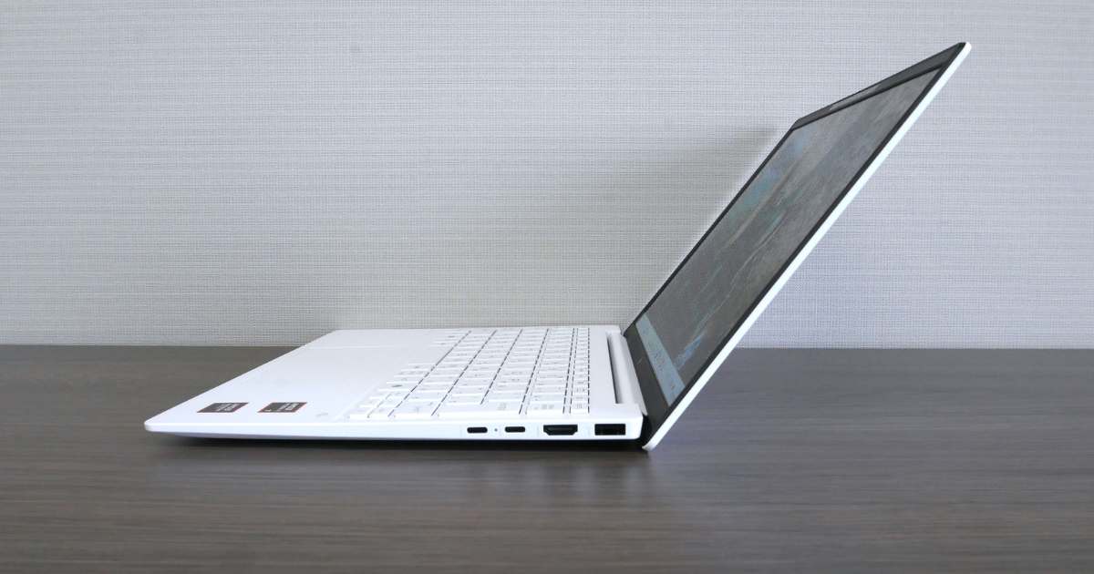 このPCの最大の特徴は、約970gという驚異的な軽さ。さらに、最新のRyzen AIプロセッサーと32GBの大容量メモリ(構成による)のおかげで、レポート作成やマルチタスク作業も非常に快適に動きます。
